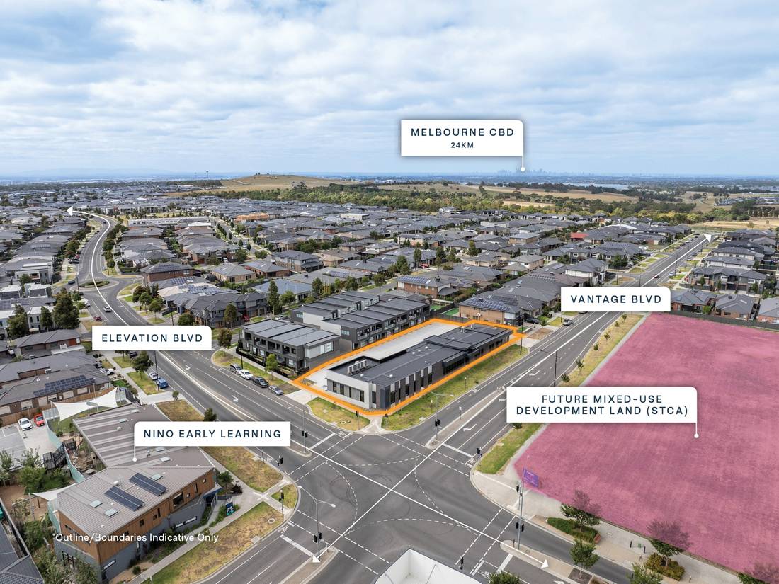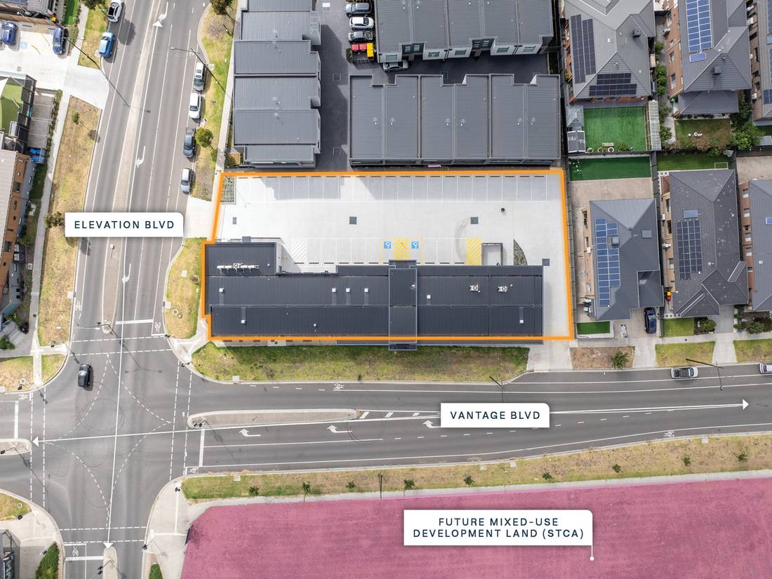 + 1,799sqm* Urban Growth Zoned site with 87 metres* of combined frontage and exposure to Vantage Boulevard and Elevation Boulevard.