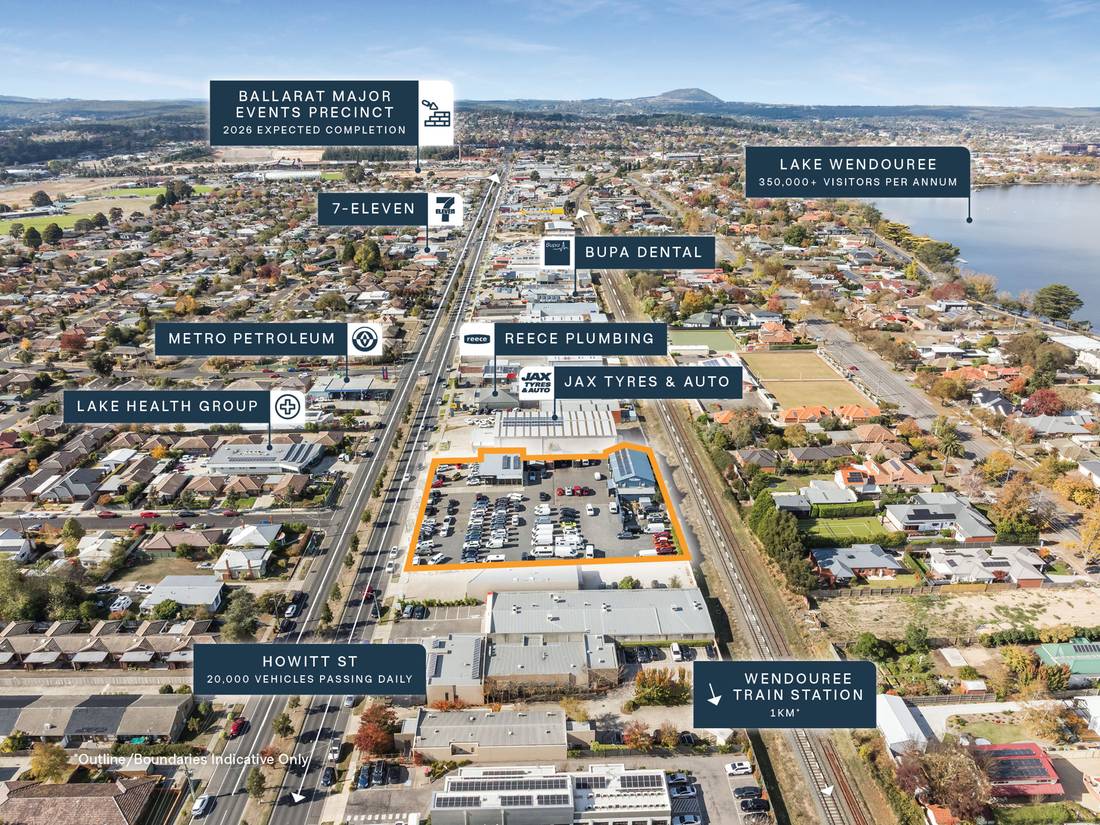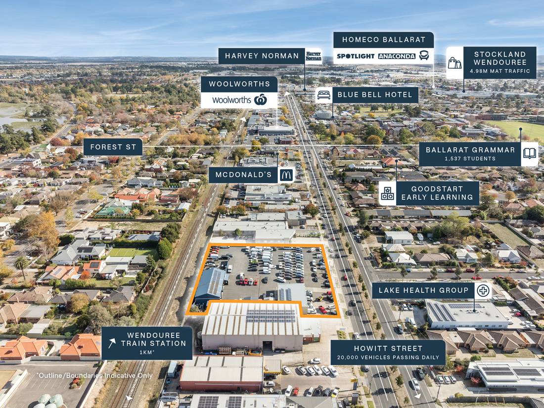 + Situated only 2.5km* from Ballarat CBD, neighbouring numerous national retailers with Woolworths, McDonald’s, Lake Health Group, Jax Tyres & Auto, Reece Plumbing, Goodstart Early Learning all within 300m.
