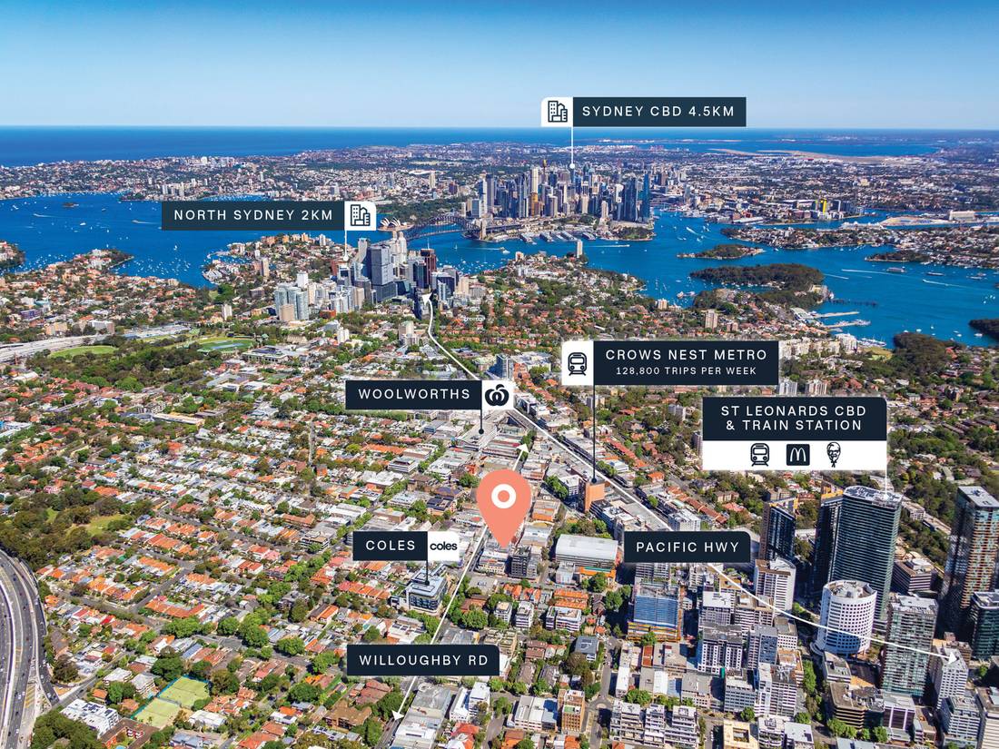 + Set to benefit from the rapidly growing rental environment with an extremely low Sydney vacancy rate of 1.4%² 118-124 Willoughby Road, Crows Nest will be offered for sale via Auction on the 9th of December 2025 from 10:30am at Yallamundi Rooms, Sydney Opera House.