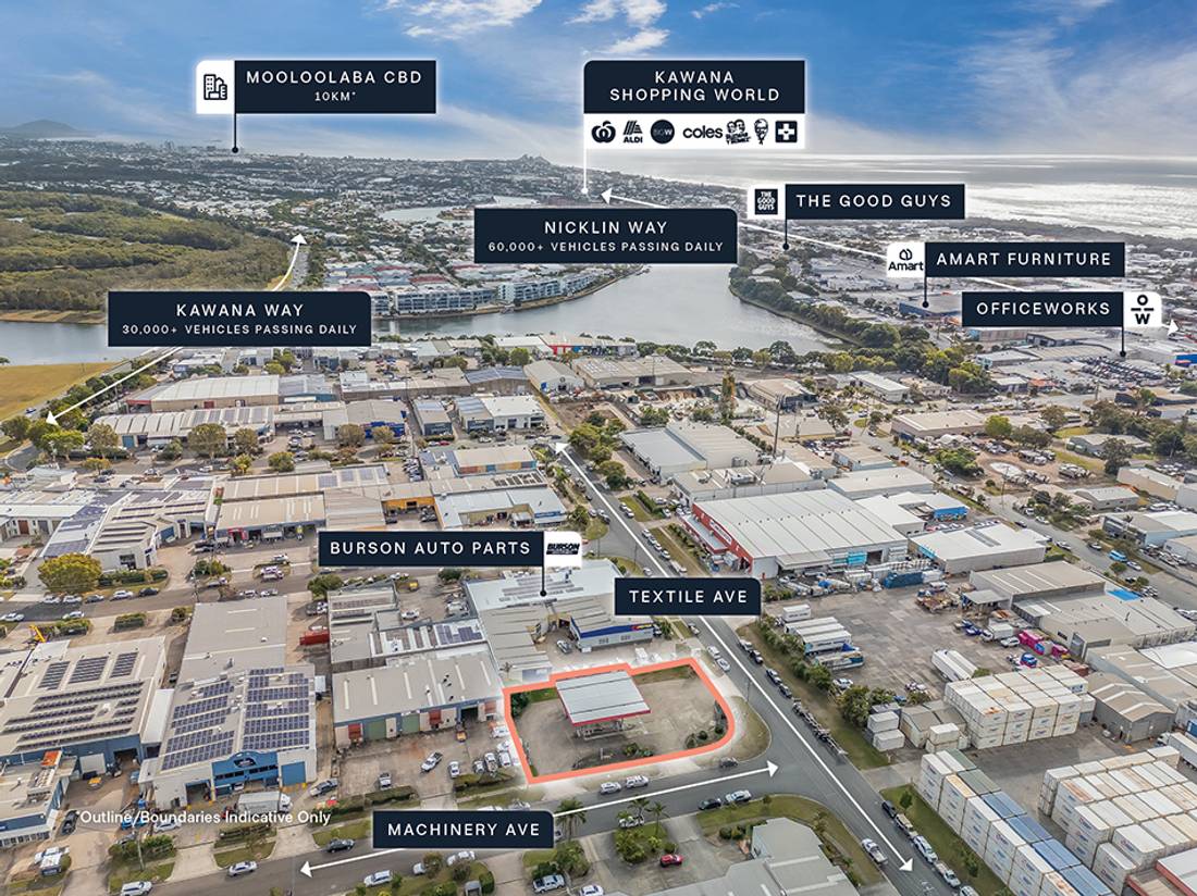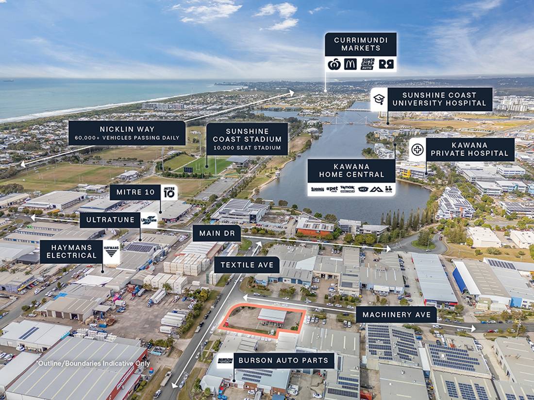+ Highly accessible industrial location, with direct access to Nicklin Way (60,000+ vehicles passing daily*) and Kawana Way (30,000+ vehicles passing daily*) and positioned within 10km* of the Mooloolaba CBD