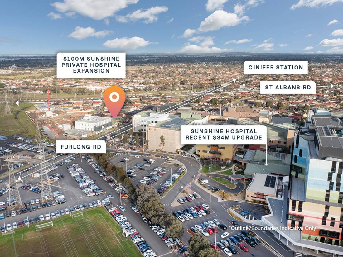 + Situated within the state government’s Sunshine Health, Wellbeing and Education precinct including Sunshine hospital (recent $34m upgrade), $100m Sunshine Private Hospital (under construction), new Joan Kirner Women’s & Children’s Hospital and $51 million health teaching and training campus.