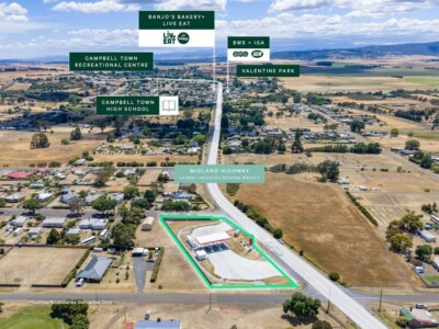 + Expansive 4,098 sqm* freehold landholding with 80 metres* of frontage and exposure to Midland Highway, the main arterial road connecting Launceston and Hobart.