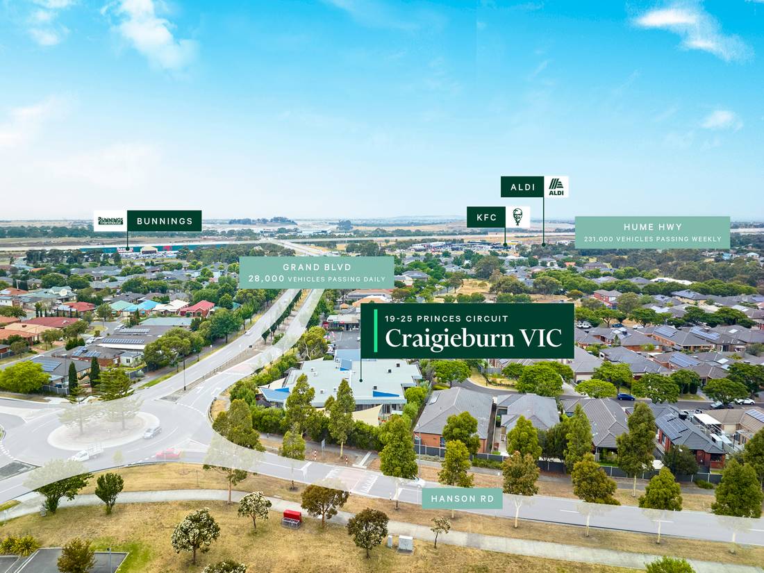 + Strategic location only 500 metres* from the Hume Freeway intersection and Bunnings, with exposure to over 33,000 vehicles passing daily*.