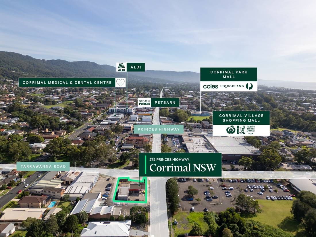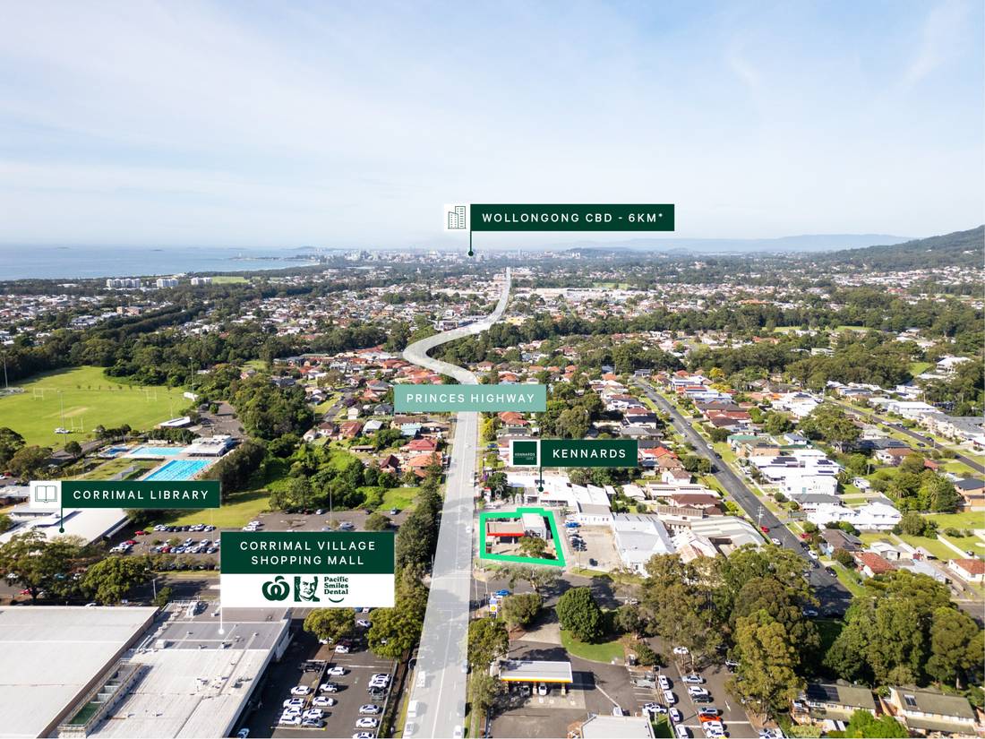 + Strategically located directly opposite Woolworth’s & Dan Murphy’s anchored Corrimal Village Shopping Mall and in close proximity to Coles anchored Corrimal Park Mall
