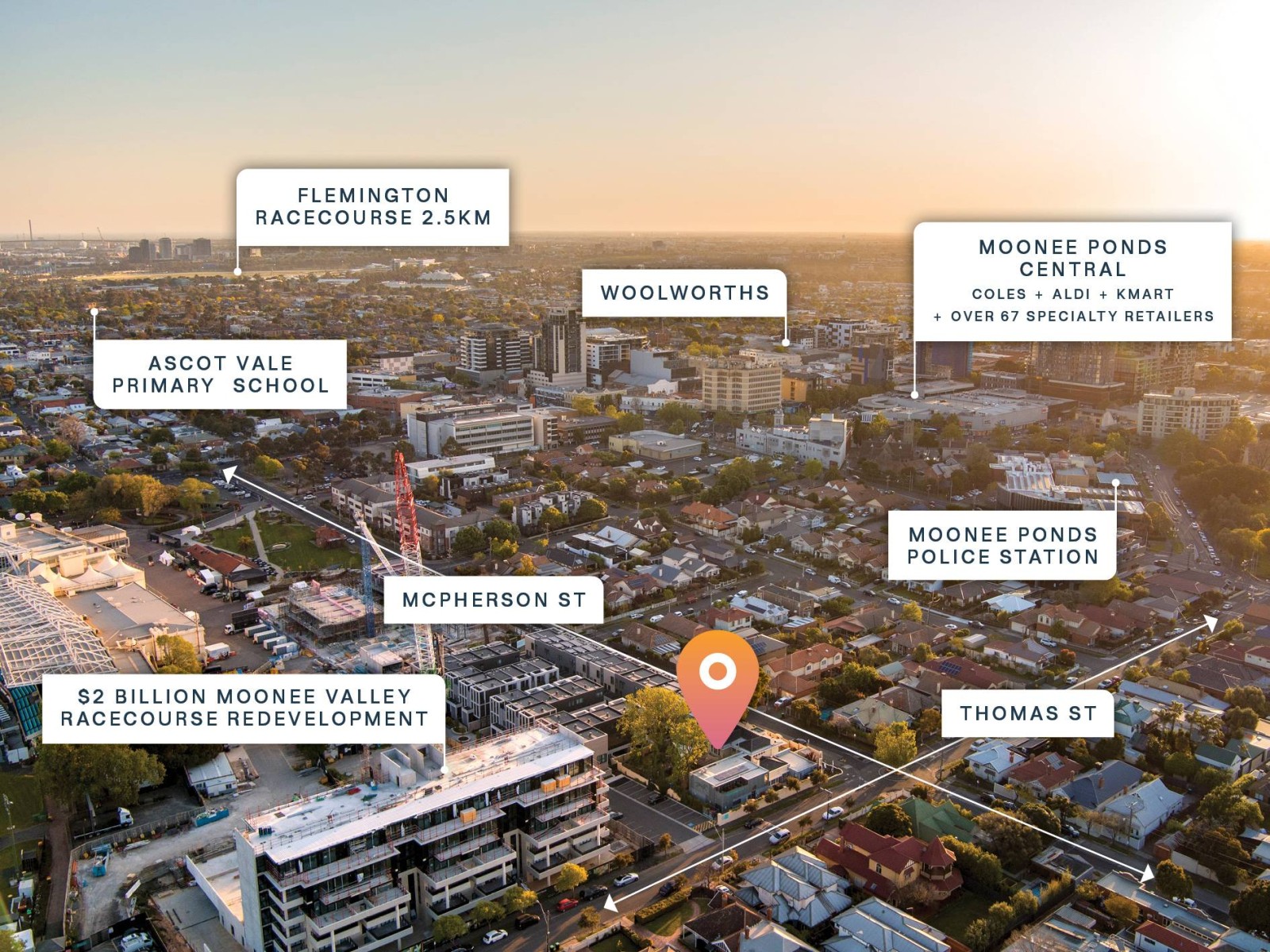 +Prime 1,928sqm* corner site with favourable ‘Activity Centre’ zoning, fronting both Thomas Street and McPherson Street and adjoining the $2 billion residential redevelopment of Moonee Valley Racing Club.