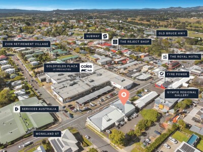 + Perfectly positioned within the Gympie CBD and located directly opposite Goldfields Plaza, anchored by Coles, K Hub and 18 specialty retailers