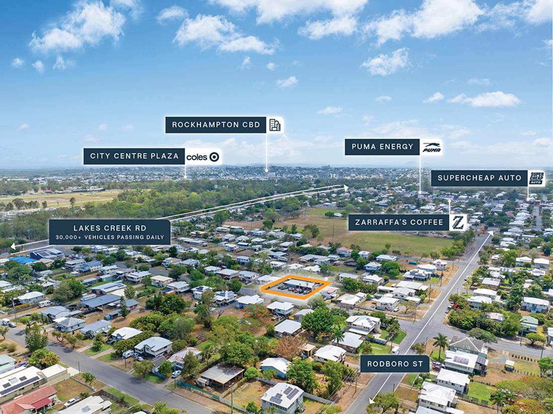 + Strategically positioned within 2km* of Stockland Rockhampton Shopping Centre, anchored by Coles, Woolworths, Kmart, Big W & 150+ specialty stores