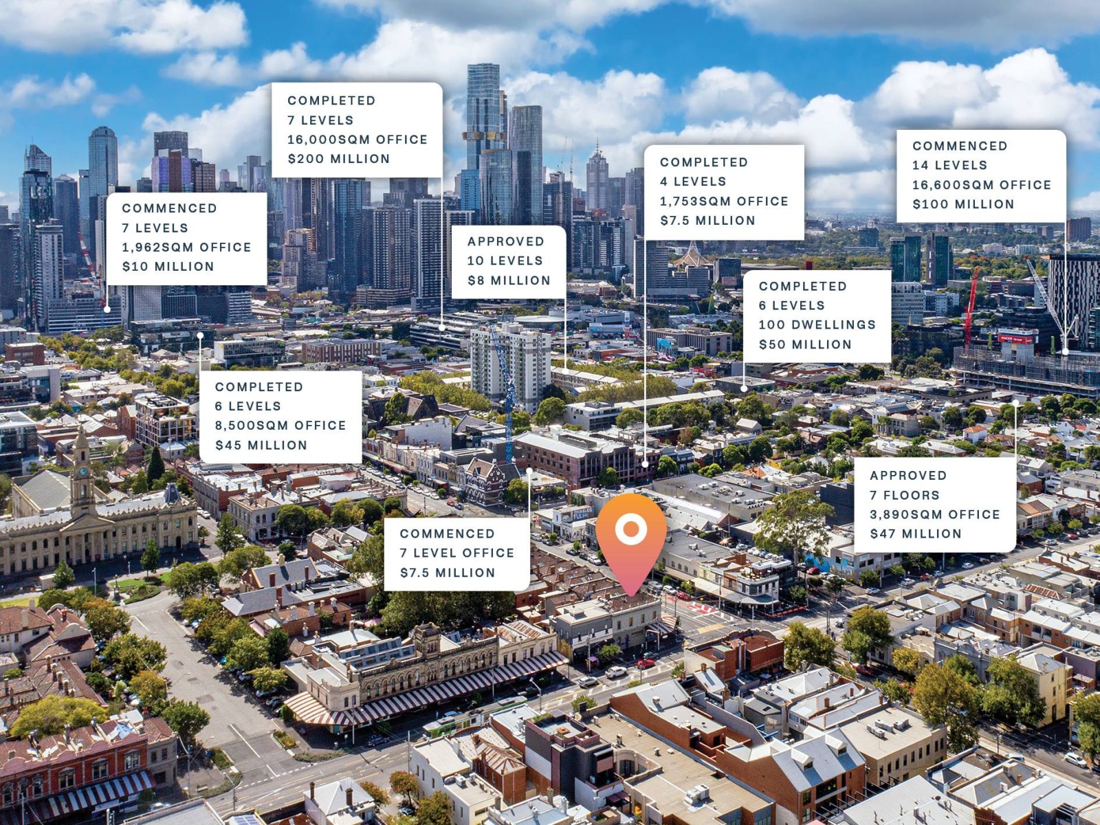 Over $1.5 billion in nearby development completed, approved or proposed including over 100,000sqm* of new office space (2).