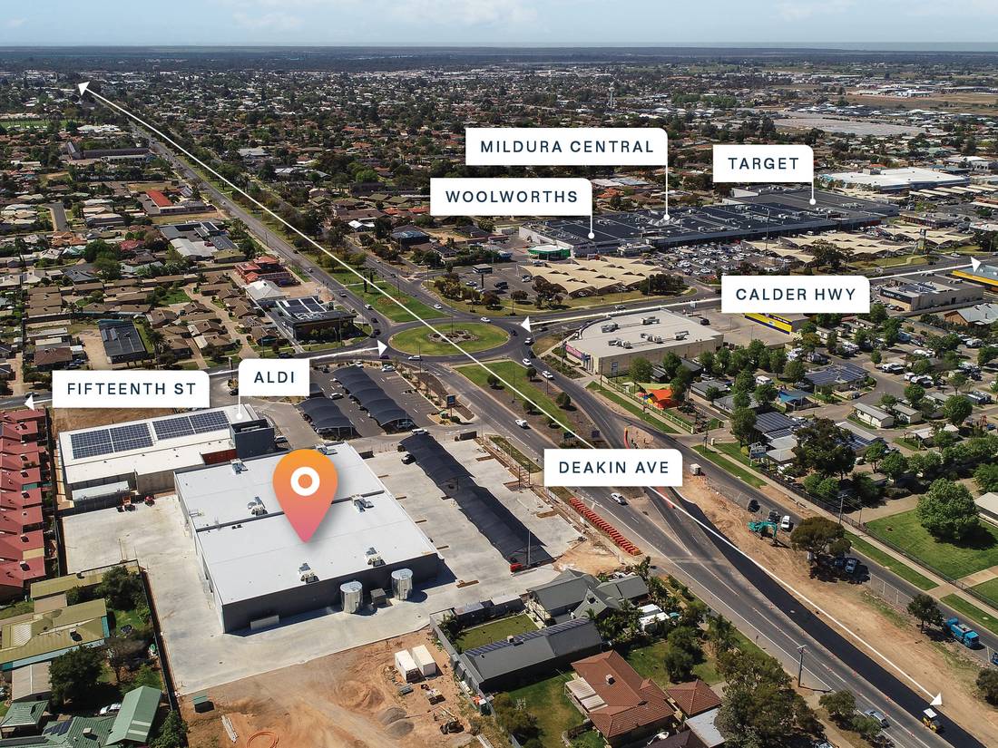 Perfectly positioned on Deakin Avenue and opposite Mildura Central Shopping Centre, this development has excellent signage opportunities whilst been surrounded by all the major national tenants like, Woolworths, Coles, Pet Barn, Target, Big W and many more.