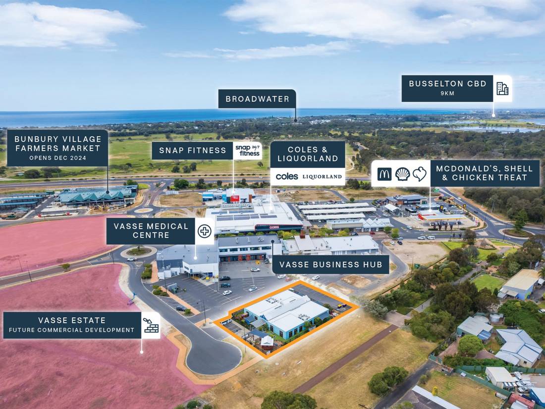 + Prime location in the heart of Vasse town centre, anchored by Coles, Liquorland, McDonald’s, Vasse Medical Centre, and the newly developed Vasse Village Bunbury Farmers Market (set to open Dec 2024).