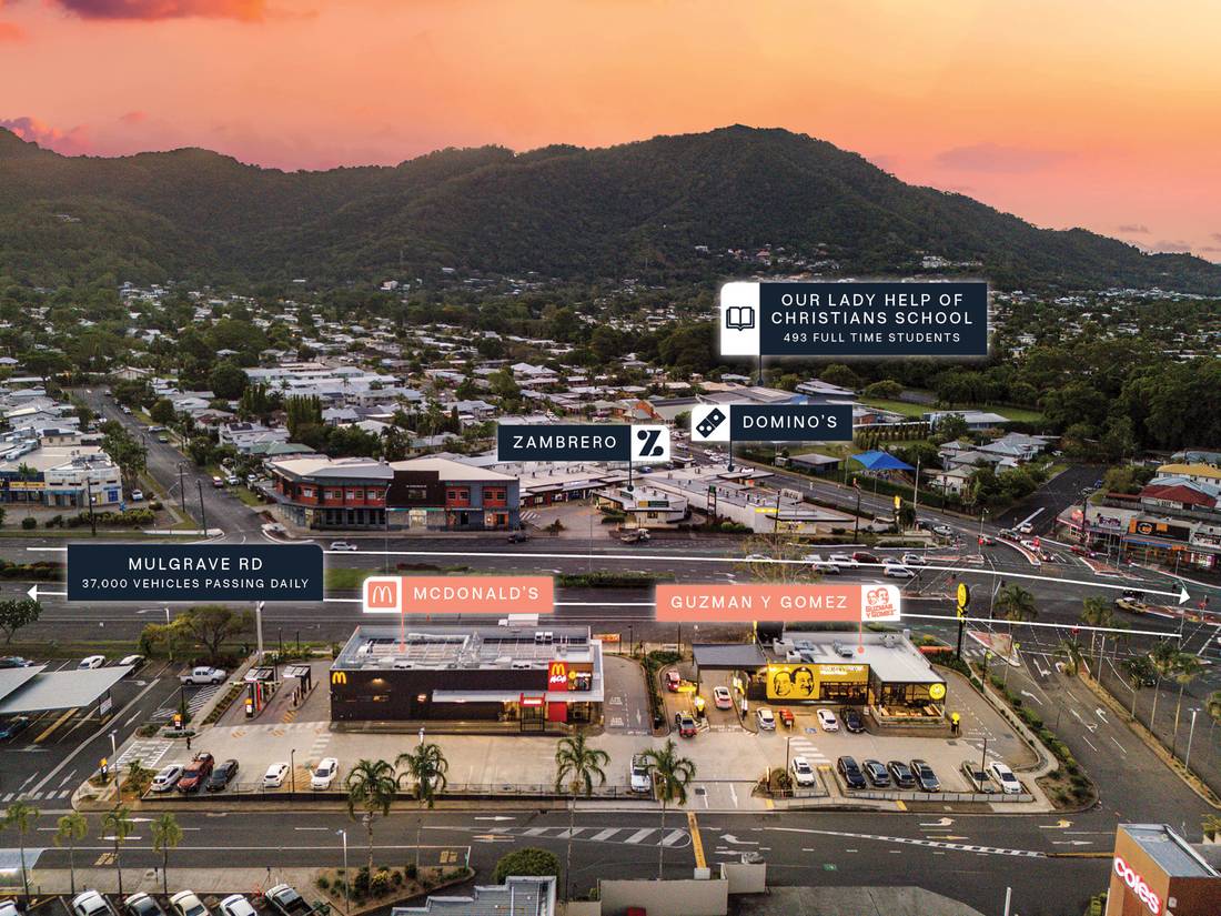 + Significant 1,983sqm* pad site with superb frontage to over 37,000 vehicles* passing daily***** via Mulgrave Road, Cairn’s busiest arterial connecting the CBD to the Bruce Highway.