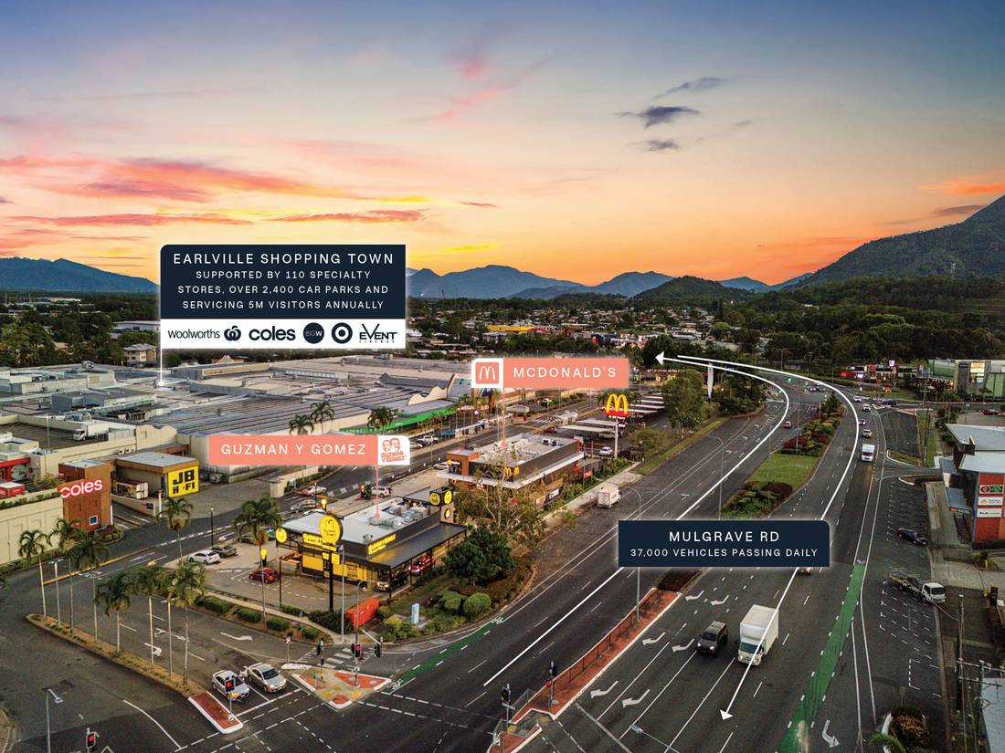 + High exposure 1,430sqm* pad site with superb frontage to over 37,000 vehicles* passing daily*** via Mulgrave Road, Cairn’s busiest arterial connecting the CBD to the Bruce Highway.