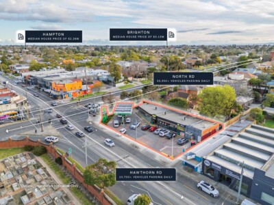 + Generational 1,291sqm* corner site with 71 metres* of combined frontage to Hawthorn Road and North Road, servicing 46,000*+ vehicles passing daily. (1)
