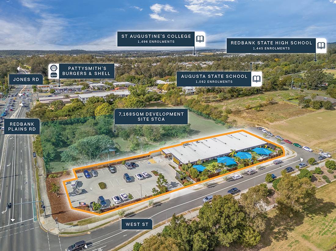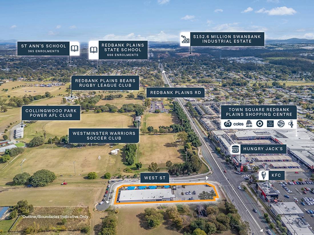 + Substantial 3,446sqm* corner landholding situated directly opposite Redbank Plains Shopping Centre, anchored by Coles, Woolworths, ALDI, Target, KFC & Hungry Jack’s The Reject Shop & supported by 50+ specialty retailers