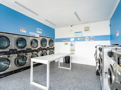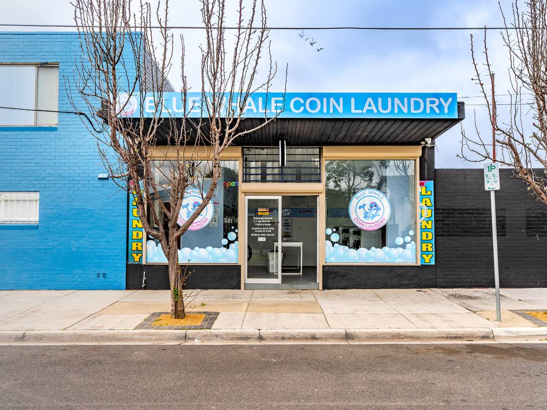 + Blue Whale Laundry: fully functioning self-service coin laundry open 7 days a week.