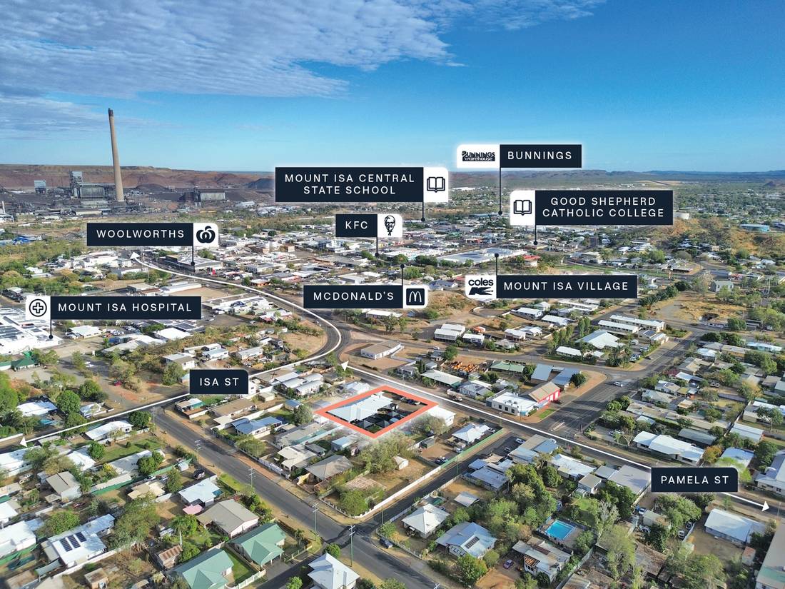 + Conveniently located only metres from Mount Isa Town Centre, with major retail amenities anchored by national retailers including Bunnings, Coles, KFC, Kmart, McDonald’s and Woolworths