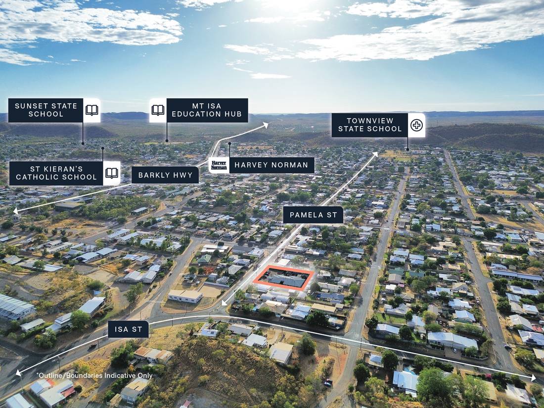 + Strategic 2,023sqm* site in a location well-supported by complementary childcare and educational services, surrounded by 13 schools within a 3km radius* and only 250m* from Mt Isa Hospital^