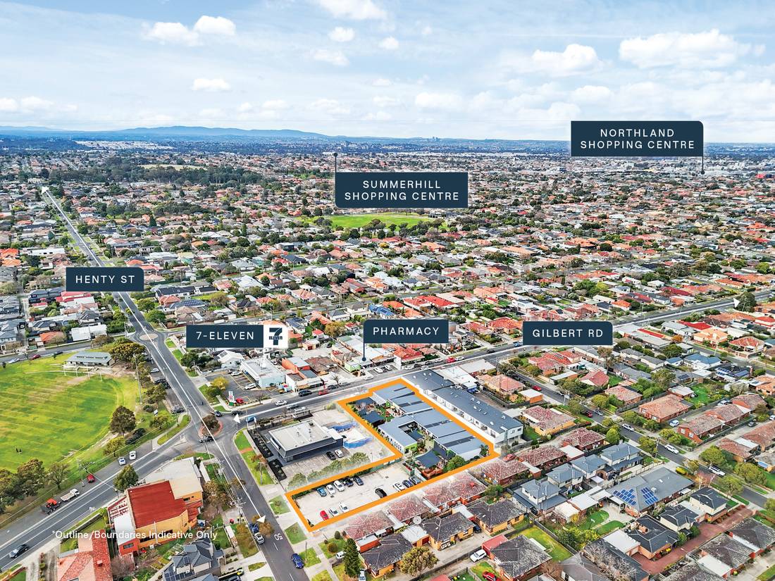+ Large 2,475sqm* metro site with 45 metres of combined dual street frontage to both Gilbert Road and Henty Street.