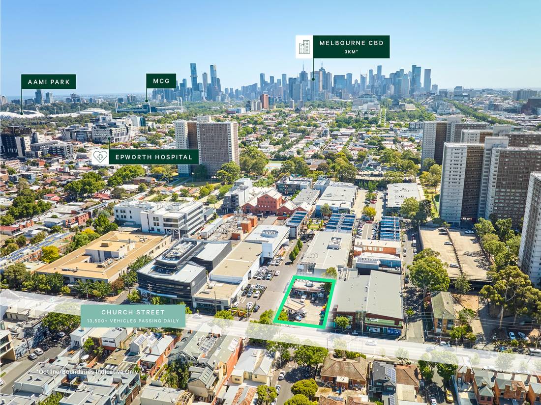 + Centrally located between key Richmond arterials Victoria Street and Bridge Road connecting Richmond to the CBD, servicing a combined 38,000 vehicles passing daily.(2)