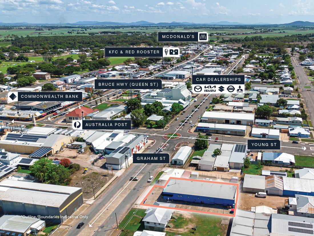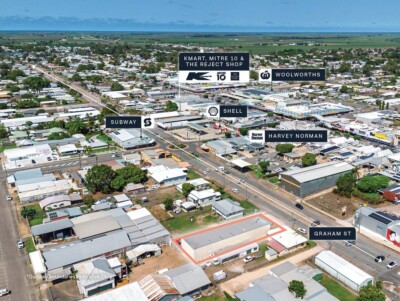 + High profile 1,013sqm* freehold site with 21m* of direct frontage the Graham Street in the heart of Ayr’s key commercial precinct, surrounded by complementary national retailers Coles, Woolworths, Kmart, Harvey Norman & Commonwealth Bank