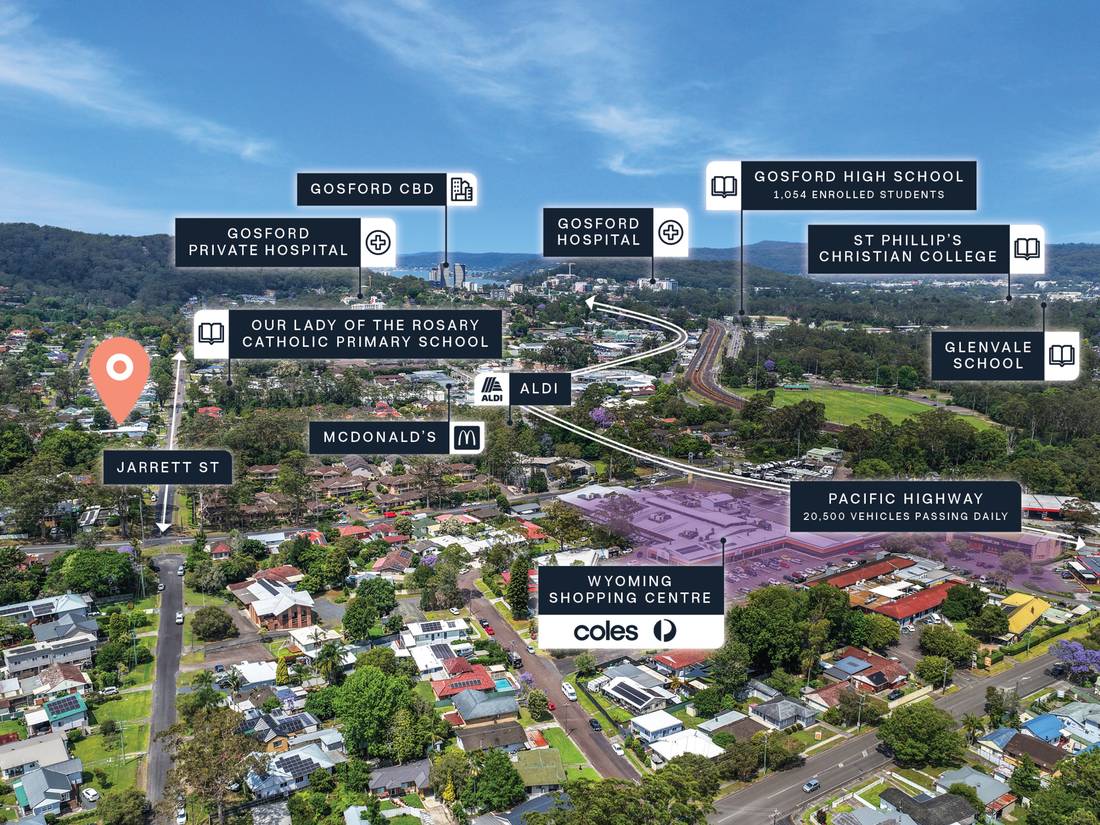 + Highly accessible commuter location, 300m* from the Pacific Highway, less than 5 minutes from Gosford and 1 hour* from Sydney