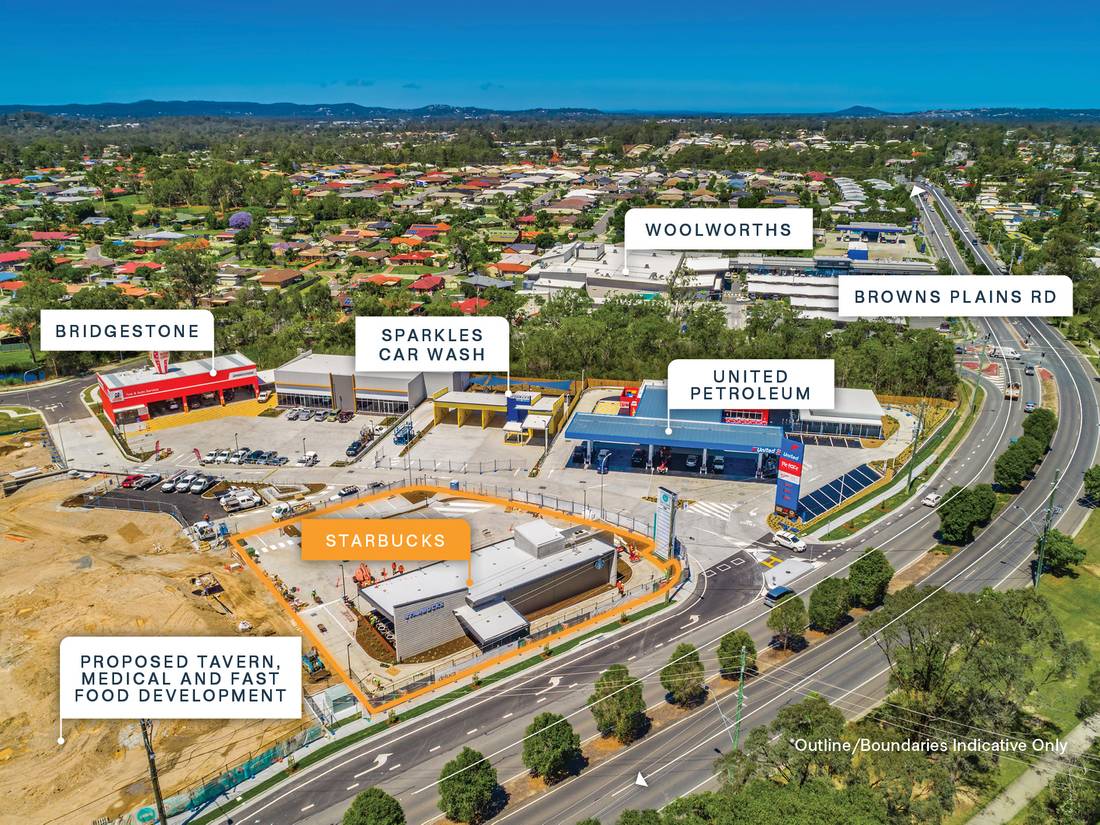 Gateway 1,982 sqm* corner site with 44 metre frontage to Browns Plains Road and 21* onsite car spaces.